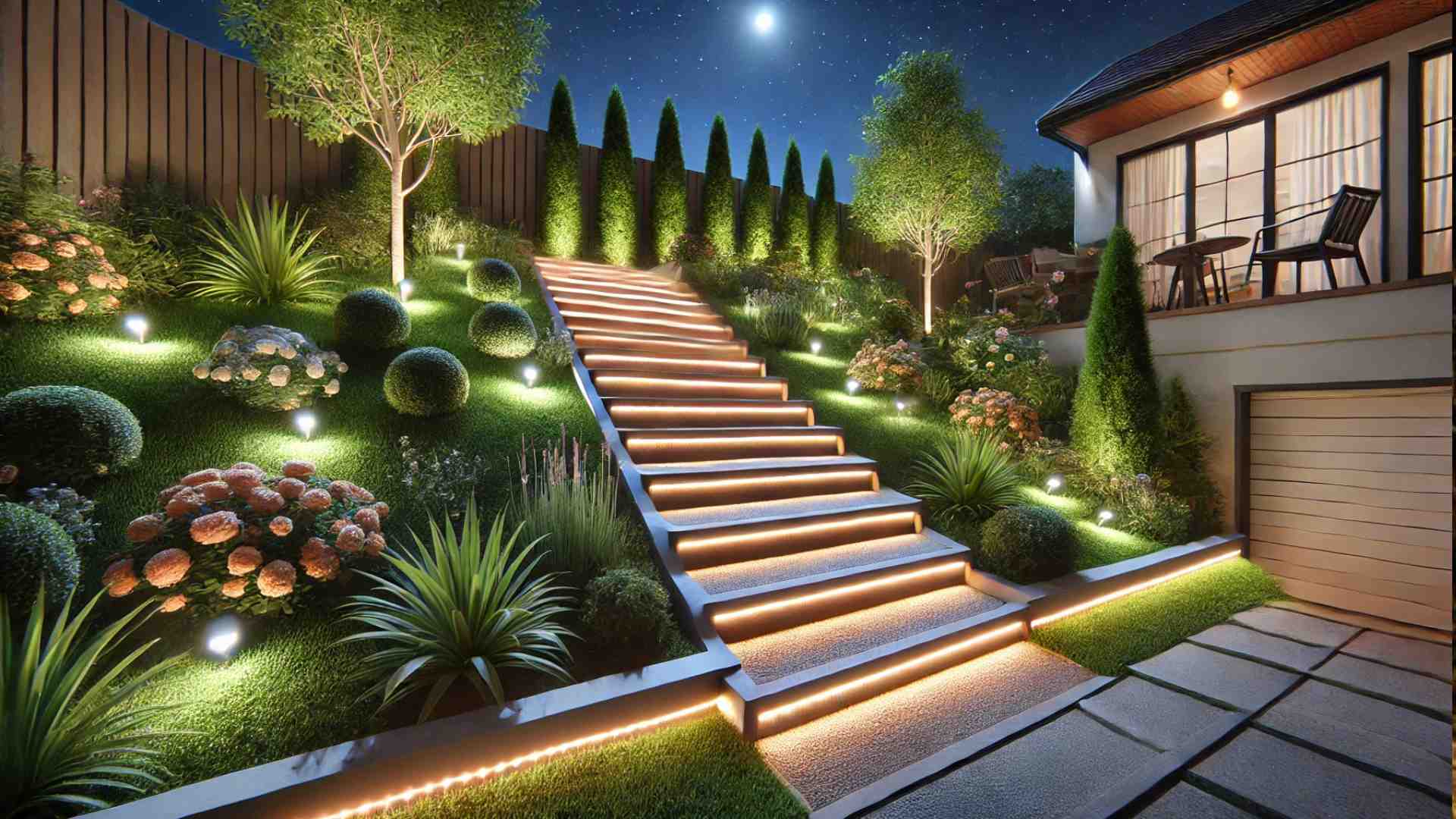 Discreet strips or puck lights integrated into the undersides of walls, steps, or handrails.