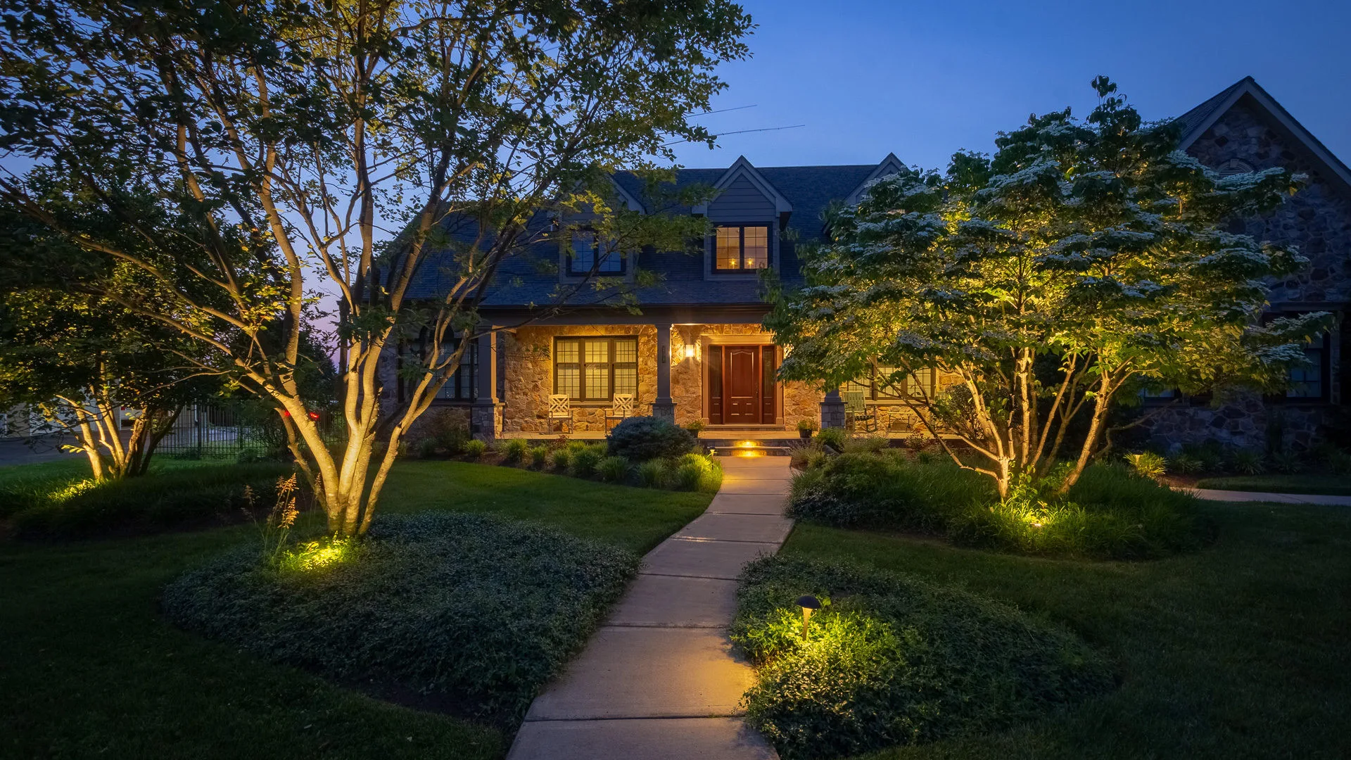Second-Order Effect: The downward light provides enough ambient glow to eliminate the need for artificial-looking path lights on the lawn.